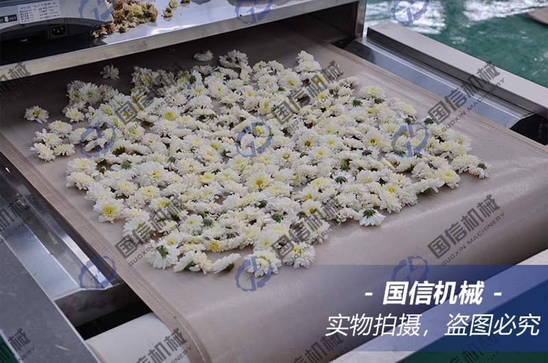 顧名思義,這款設(shè)備采用的就是微波來進(jìn)行烘干和殺青,設(shè)備集殺青、殺菌、烘干于一體,一機多用,工作原理是以微波的高頻震蕩作用,使菊花從內(nèi)而外的干燥,殺青效果好,營養(yǎng)物質(zhì)保留完整,烘干后的菊花色澤鮮艷,不變色,賣相好。