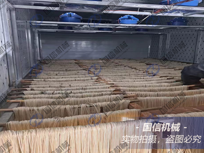 2、 將過夜冷凍后的紅薯粉條推入烘干房中,開始進(jìn)行升溫排濕干燥;