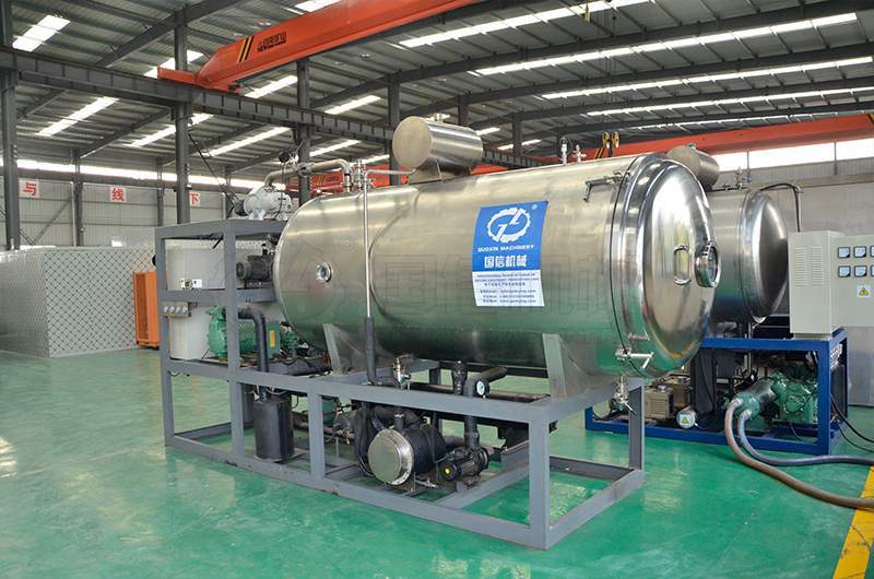 冷凍真空干燥是將切制好的物料,在封閉的容器中快速冷凍,然后降低容器內(nèi)的壓力,使速凍的物料處于真空狀態(tài)下,再加熱使物料內(nèi)部的冰晶直接升華成水蒸氣排出,物料在低溫狀態(tài)下脫水干燥。干燥后產(chǎn)品的營(yíng)養(yǎng)成分、色澤、味道、形狀等變化很小,產(chǎn)品質(zhì)量較高。但冷凍真空干燥設(shè)備投資大、運(yùn)行成本高,對(duì)于效益好、經(jīng)濟(jì)價(jià)值高、要求嚴(yán)格、產(chǎn)量不大的物料進(jìn)行干燥比較適用,如人參、枸杞、黃氏等。目前,國(guó)內(nèi)在脫水蔬菜加工中,冷凍真空干燥應(yīng)用較少。