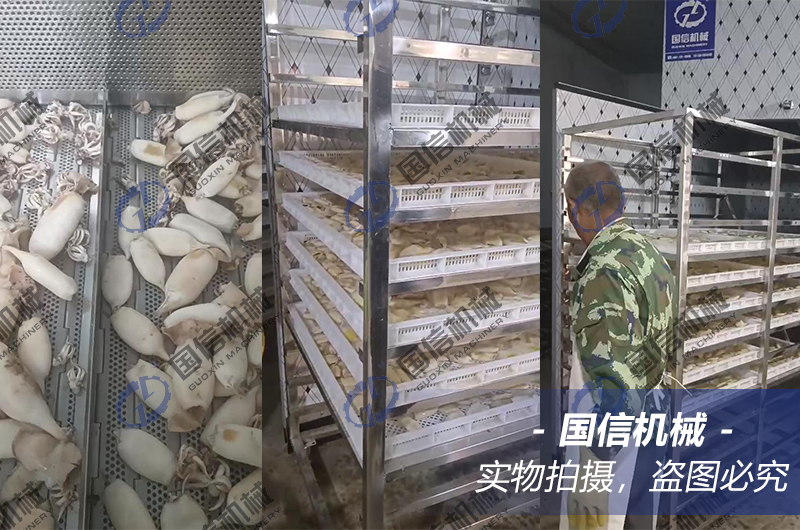水產(chǎn)品烘干前期預(yù)熱階段,溫度要求控制在30℃以內(nèi),低溫烘干6-8個小時,濕度控制在80%左右。