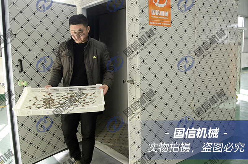 導(dǎo)讀:洛陽蝎子養(yǎng)殖廠客戶與我們的網(wǎng)站客服進(jìn)行聯(lián)系,想購買一臺(tái)中藥材烘干設(shè)備,用于加工蝎子。根據(jù)客戶的需求,我們?yōu)榭蛻粼敿?xì)介紹了一款中小型烘干房,并邀請(qǐng)客戶來廠參觀考察。