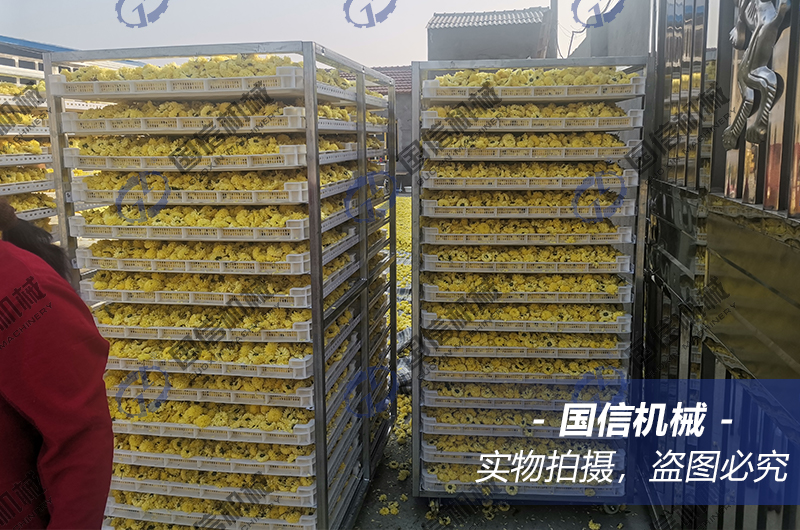 菊花烘干為了保證烘干顏色,有些客戶會(huì)選擇先殺青處理,然后再烘干。殺青主要目的是通過高溫來破壞菊花中的氧化酶活性,防止烘干過程中變色,營(yíng)養(yǎng)成分保留完整,大大提高了菊花的品質(zhì),而且在殺青環(huán)節(jié)蒸發(fā)掉了10%的水分,節(jié)省了后續(xù)的烘干成本。