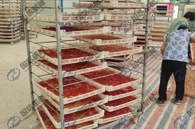 張總選用辣椒作為烘干原材料,通過我們廠家配置的辣椒烘干機,結(jié)合用戶的實際需求以及辣椒的特性,使得通過我們廠家提供的辣椒烘干設(shè)備,不僅滿足了該辣椒加工廠家對辣椒的烘干質(zhì)量及產(chǎn)量上的需求,又為廠家解決了辣椒深加工生產(chǎn)上的難題,配置簡單、高效得到用戶的好評。