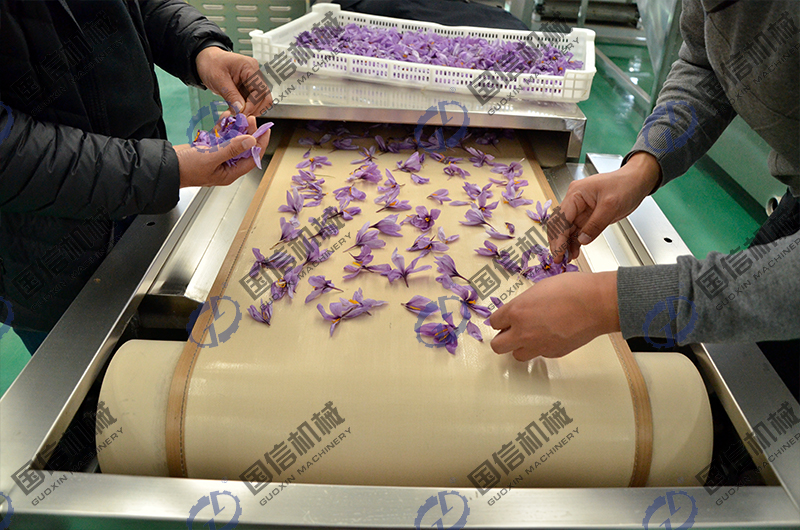 5、提高工作效率:微波茶葉烘干殺青機采用了自動上、下料,操作人員只須按動按鈕,監(jiān)控設(shè)備運轉(zhuǎn)設(shè)備情況和巡視鮮花的殺青程度即可,整過殺青、干燥只需1-2人。