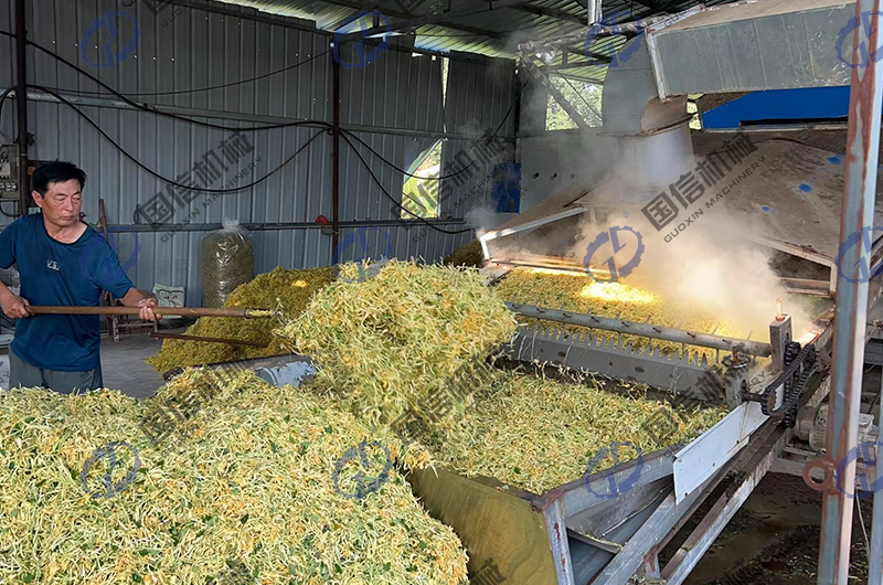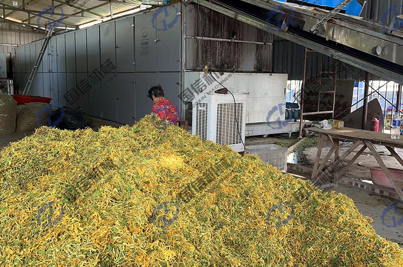 國(guó)信烘干機(jī)廠(chǎng)家通過(guò)對(duì)市場(chǎng)上人們干制金銀花的需求進(jìn)行研究,推出了全自動(dòng)流水線(xiàn)的金銀花烘干加工設(shè)備-大型全自動(dòng)金銀花烘干機(jī)設(shè)備。