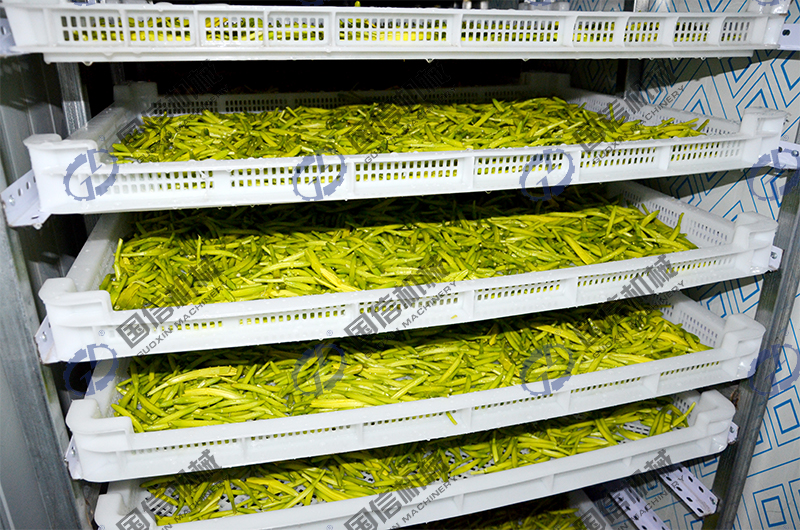 公司生產的空氣能黃花菜烘干房是一種以空氣能熱泵為主機,以電作為熱源,烘干后產品品質很好且無污染物排放。使用空氣能烘干機烘干黃花菜不僅免受污染與霉變的困擾,而且設備智能化程度高,操作簡單方便,無需專人看管。使用熱泵干燥物料成為國家倡導的一種節(jié)能型干燥方式。黃花菜烘干房同時具有殺青功能,由于黃花菜在烘干前必須先進行殺青,因此才能達到護色的效果,所以在選擇設備時必須選擇具有殺青功能的烘干設備,有的烘干房不具有這種功能,而我們國信生產的黃花菜烘干房就有這種功能,希望需要的朋友在選擇黃花菜烘干房時要慎重選擇。