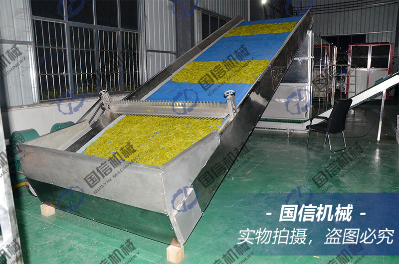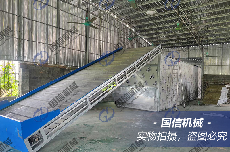 網(wǎng)帶式黃花菜干燥機是一種多層網(wǎng)帶式的烘干結(jié)構(gòu),烘干產(chǎn)量大,生產(chǎn)效率高,可24小時不間斷地對黃花菜進行干燥脫水處理,所以網(wǎng)帶式黃花菜干燥機一般常用于大型黃花菜烘干加工廠的烘干操作。目前國信烘干機廠家所生產(chǎn)的網(wǎng)帶式烘干機烘干產(chǎn)量在幾噸到幾十噸之間,并且可以根據(jù)客戶的需要,定制網(wǎng)帶層數(shù)和烘干箱長度,所以它的烘干產(chǎn)量還是比較大的,烘干的效率也比較高。這種連續(xù)式黃花菜烘干機,也是市場上需求量比較大的設(shè)備。設(shè)備產(chǎn)量范圍在幾噸到幾十噸不等,還可以根據(jù)客戶產(chǎn)量要求定制多層網(wǎng)帶式黃花菜烘干機,烘干產(chǎn)量可達近百噸。