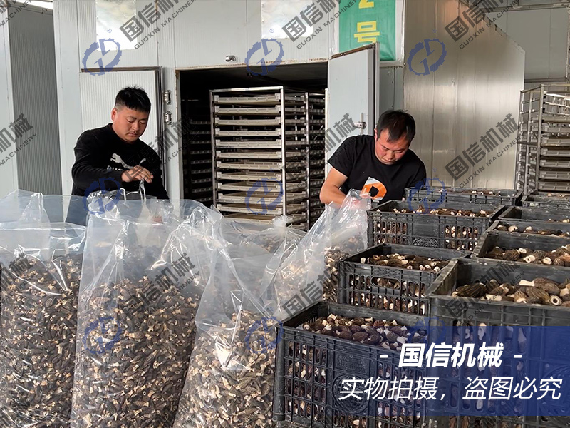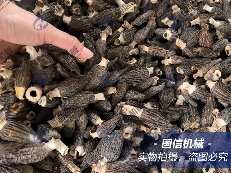 溫度上升在40℃~45℃的范圍內(nèi),濕度降到55%,烘2小時(shí)左右,這時(shí)羊肚菌有收縮,水分明顯減少。