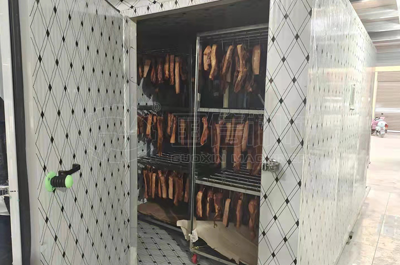 臘味烘干機(jī)特點(diǎn) 1、可模擬冬季氣候條件,設(shè)備自動(dòng)實(shí)現(xiàn)冷(最低10℃)、熱風(fēng)(最高75℃)烘干; 2、自動(dòng)化程度高,采用觸摸屏控制,可精確控制烘房溫度、及濕度; 3、生產(chǎn)環(huán)境衛(wèi)生,設(shè)備運(yùn)行過(guò)程中無(wú)廢氣、廢水、廢渣排放; 4、節(jié)省勞動(dòng)力成本,無(wú)需安排專職人員看守設(shè)備。
