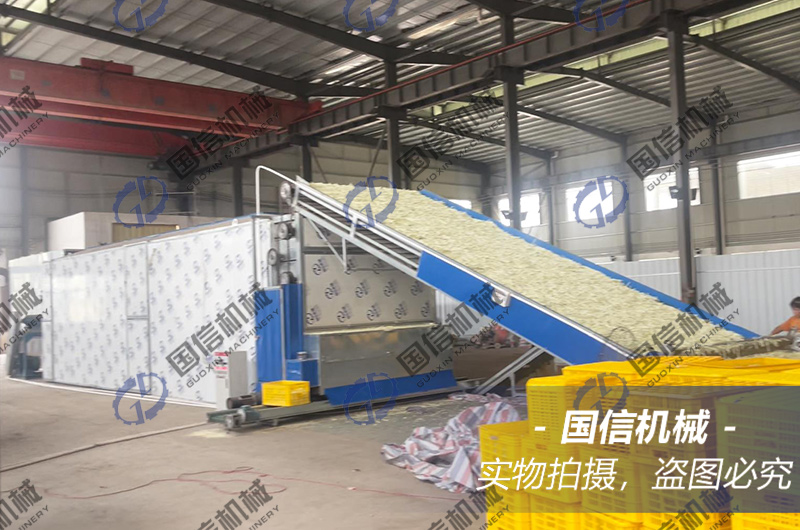 國信機械蘿卜條烘干機、蘿卜絲烘干生產(chǎn)線是根據(jù)蘿卜的特性和含水量以及適合蘿卜的科學干燥曲線相接合,在烘干設(shè)備的縱橫方向設(shè)置多個溫區(qū),蘿卜在烘室內(nèi)從上到下的段落回轉(zhuǎn)移動過程中自然翻動,經(jīng)過不同溫區(qū),依次實現(xiàn)預熱干燥-勻速干燥-減速干燥三個干燥過程,其表面受熱均勻,更好的實現(xiàn)蘿卜適干率高、干燥快、色澤好,達到優(yōu)質(zhì)高效的干燥作業(yè)結(jié)果。 能夠滿足工業(yè)生產(chǎn)蘿卜加工要求,保全蘿卜固有的品質(zhì),營養(yǎng)成份不流失。生產(chǎn)過程中無任何污染,設(shè)備和加工工藝達到國家藥品、食品衛(wèi) 生標準。