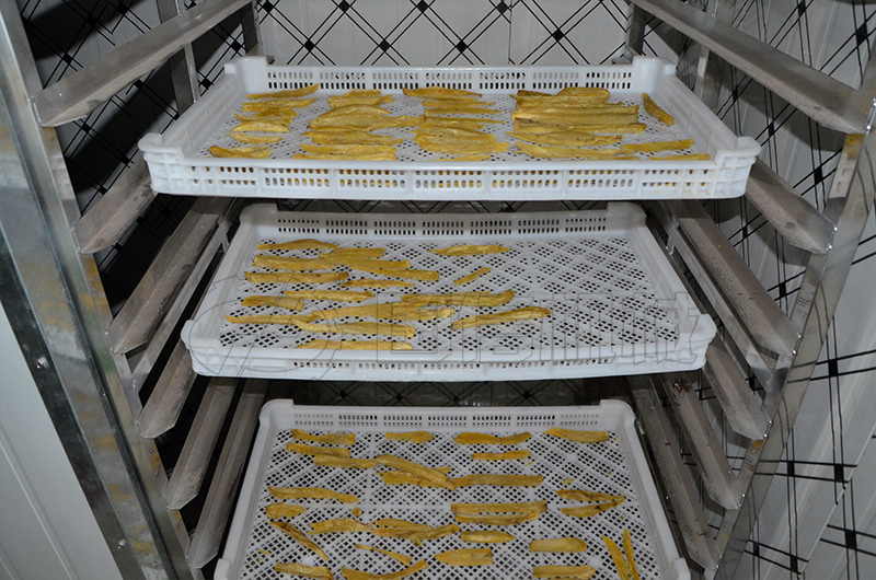 第一階段:待烘干房溫度升至大約30℃時(shí)將紅薯?xiàng)l放入烘房?jī)?nèi)部。設(shè)定溫度為40℃,烘干時(shí)間1-2小時(shí);