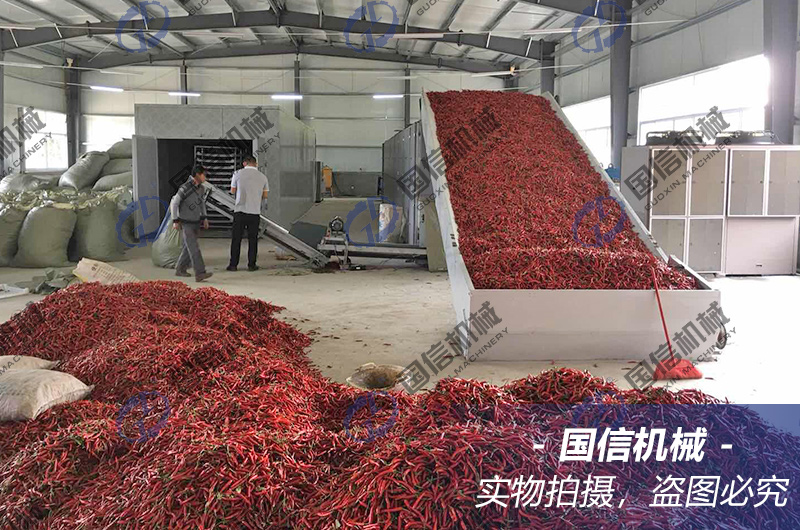 辣椒打孔機配套辣椒烘干機使用,能夠有效的縮短辣椒的烘干時間。