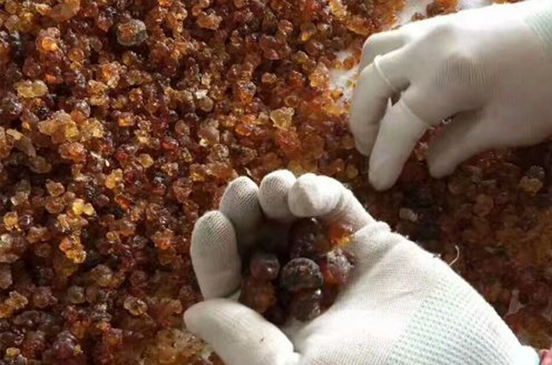 一、采收在桃、李、杏、櫻桃樹生長季度采收桃膠。用小刀削取上述樹種樹干上的膠質(zhì)物,置于陽光下曬干,即為桃膠原料。采收桃膠時不得傷及樹皮。