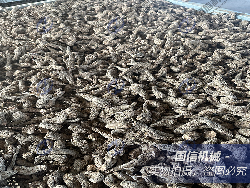 地黃一般在每年的4-6月份進(jìn)行種植,生長(zhǎng)周期為半年,在同年的11月份進(jìn)行采集收獲,或者來(lái)年的一月進(jìn)行采挖。新鮮地黃采挖,要注意防止破皮,出土后因其容易霉?fàn)€,應(yīng)盡快進(jìn)行加工處理,新鮮收獲的生地黃應(yīng)緩緩烘至約八成干。面對(duì)近年來(lái)地黃種植的普及,產(chǎn)量逐年遞增,傳統(tǒng)的烘干顯然不能滿足,宜使用網(wǎng)帶式地黃烘干機(jī),烘干的地黃品相好,同時(shí)適用于熟地黃和生地黃的烘干。