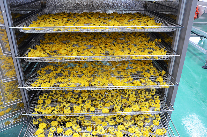 菊花、金絲皇菊等花類(lèi)烘干為保證自身的香味、營(yíng)養(yǎng)成份不被破壞,且方便后期使用和存儲(chǔ)效果,建議在半開(kāi)季開(kāi)始收集采摘,進(jìn)行烘干作業(yè)。
