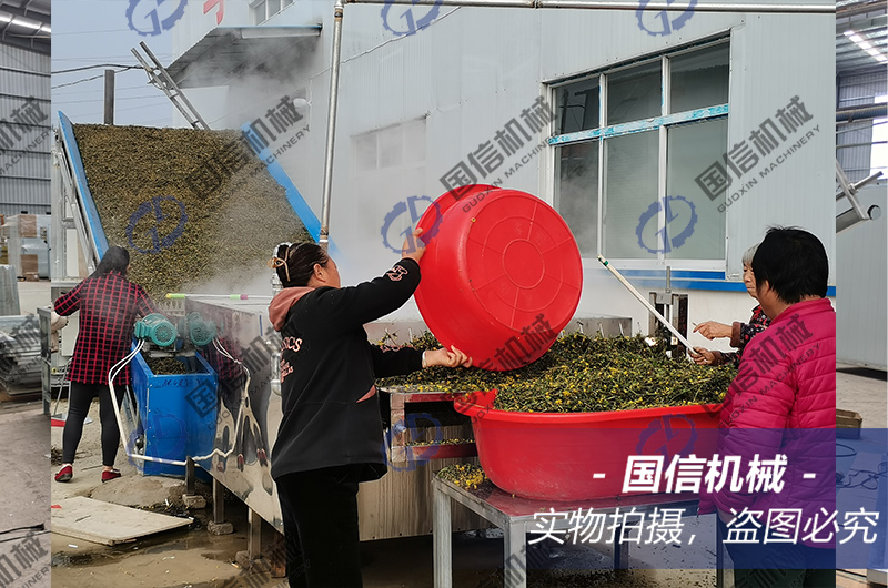 菊花殺青機具有殺青效率高、殺青后菊花色澤自然、口感好,設(shè)備操作簡單、工作過程中對環(huán)境無污染等特點。